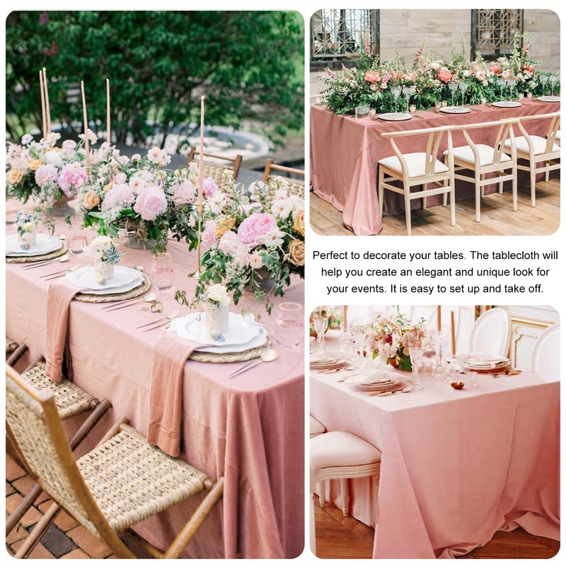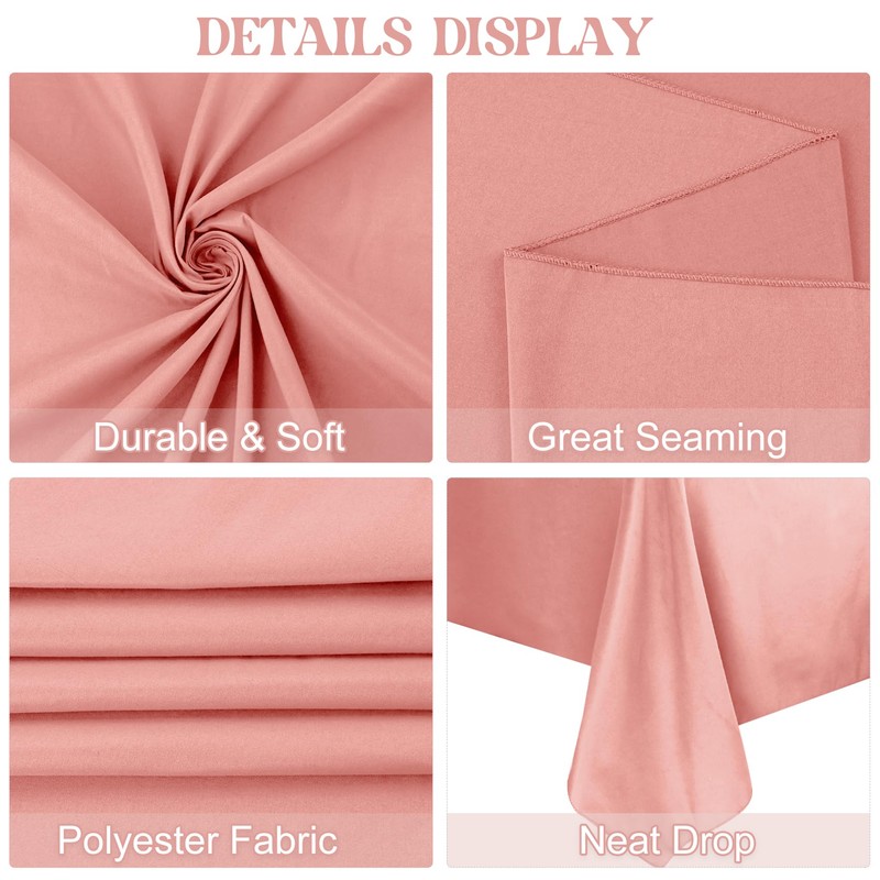 - 【PACKAGE INCLUDED】The package will include 4 packs of dusty rose 100% premium polyester tablecloths. This size of each dusty rose tablecloths for rectangle tables is approximately 60” wide x126” long, perfect for standard 8ft table, providing 15 inch drop. The table cloth also fits for 6ft tables with a 27 inch drop. Please carefully measure your table size before purchasing our tablecloth, Thank you so much!