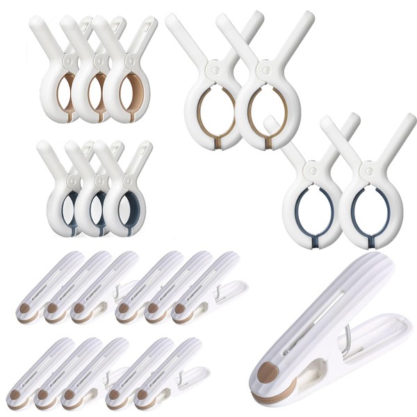 JALCH Beach Towel Clips – 22-Piece Set of Non-Slip and Windproof Clips for Beach Chairs and Towels - Ideal for Laundry and Outdoor Use 3 Different Sizes