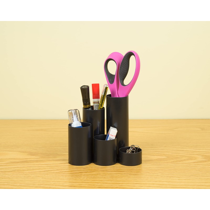 - Handy Pen Pot Organizer with five tubes for holding all your writing equipment, paperclps and other smaller desk accessories