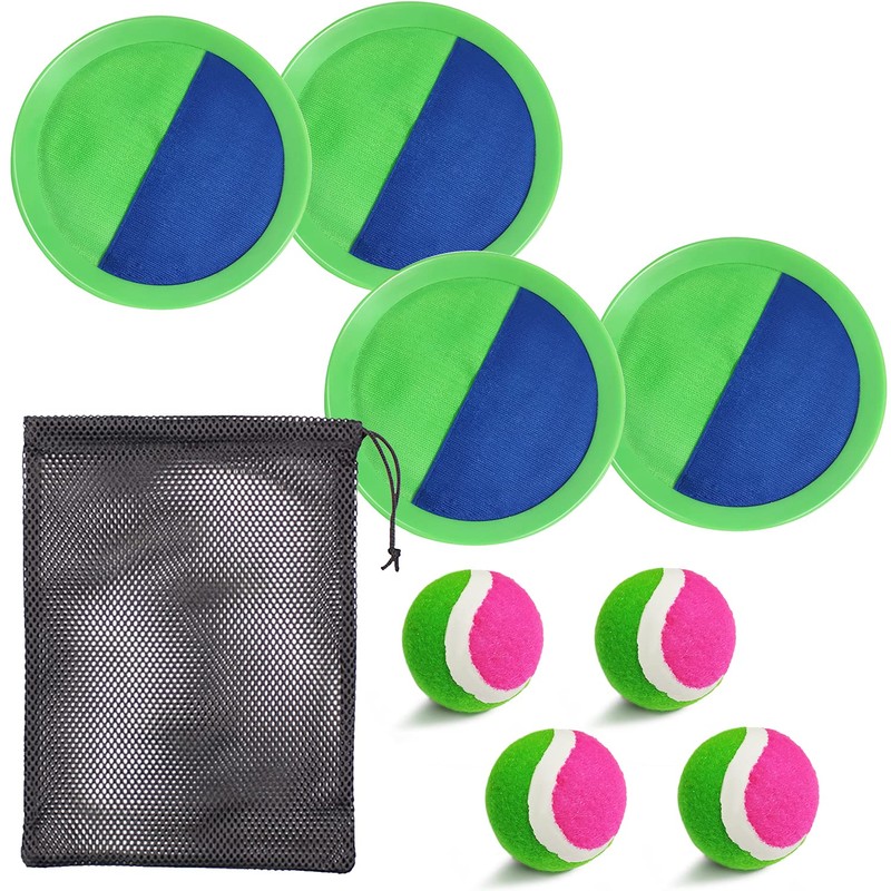 - ⚾ Great Balance Stickiness Volcro – The volcro piece on the paddle is sticky enough to catch to ball easily. But it not hard for your littler kids to pull the ball off the volcro disc. This catch toss set made of environmentally-friendly PE, no smell super safe for your kids