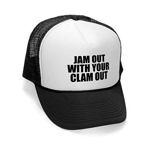JAM Out with Your Clam Out - Funny Party Club - Vintage Retro Style Trucker Cap Hat (Black)