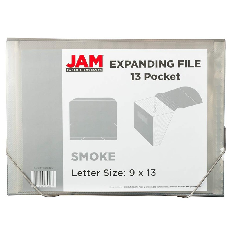 JAM PAPER Accordion Folders - 13 Pocket Plastic Expanding File - Letter Size - 9 x 13 - Smoke Grey - Sold Individually