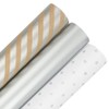- Designs Include: Brown Kraft with Silver Stripes, White with Silver Dots, and Metallic Matte Silver | Get into the Christmas spirit with this elegant wrapping paper to add the finishing touch to any gift.