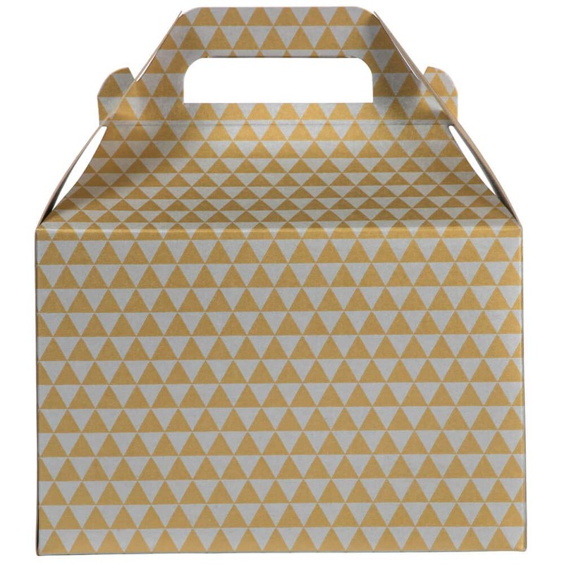 JAM Paper Gable Gift Box with Handle - Medium - 4 x 8 x 5 1/4 - Gold & Silver Diamond - Sold individually