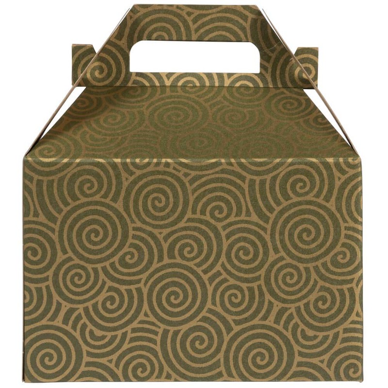 JAM Paper Gable Gift Box with Handle - Medium - 4 x 8 x 5 1/4 - Green & Gold Swirl - Sold individually