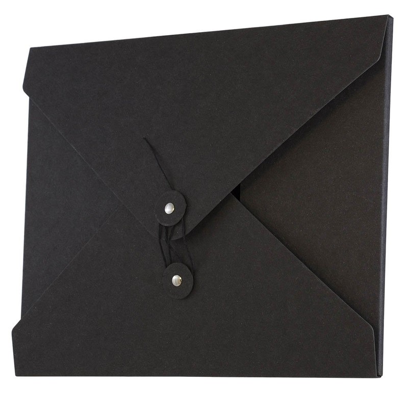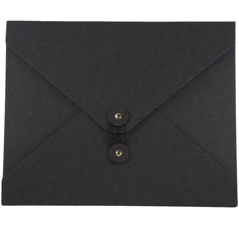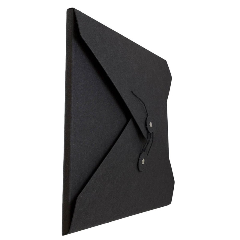 JAM PAPER Kraft Portfolio with Button and String Tie - Medium - 9 1/2 x 12 x 1/4 - Black Recycled - Sold Individually