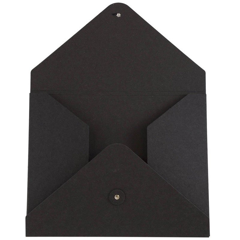 JAM Paper Black Recycled Medium Kraft Portfolio is made out of smooth, high quality, and environmentally friendly 100% recycled chipboard. This portfolio case is sold individually and measures 9.5 x 12 x 0.25 inches in size. This size makes it excellent for carrying, storing, and organizing standard sized documents while keeping then protected. The jet black color of this portfolio gives it a professional appearance that looks great in your office or work space! To complete its sophisticated look and to slow for easy, reliable opening and closing, this portfolio has a vflap with a two-button and string-tie closure. Both buttons of this closure match the surface of the case and the string features a matching black color. Size: 9.5in x 12in x 0.25in | Color: Black Recycled | Quantity: 1 (Sold Individually)