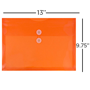 JAM PAPER Plastic Envelopes with Button & String Tie Closure - Letter Booklet - 9 3/4 x 13 - Orange - 12/Pack