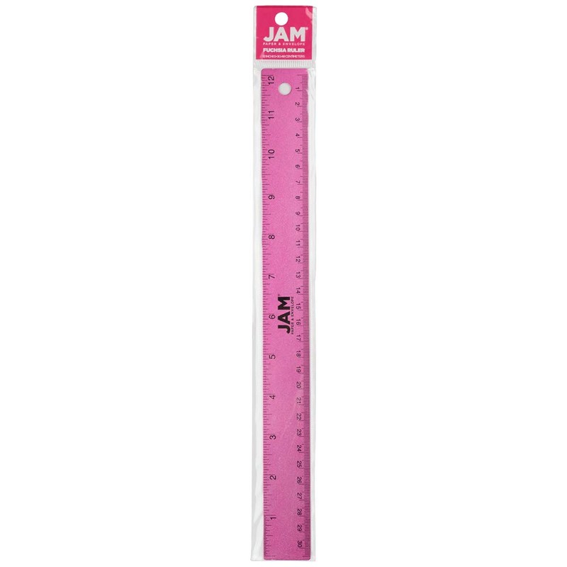 JAM PAPER Strong Aluminum Ruler - 12 Inch - Metal Ruler with Non-Skid Cork Backing - Fuchsia Metallic - Sold Individually