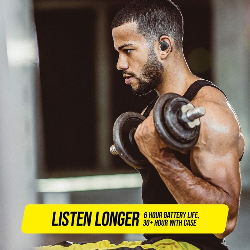 - IPX5 Sweat & All Weather Ready / Go all out! With sweat-resistant materials, these earbuds are the perfect partner for a long hike or bike ride.