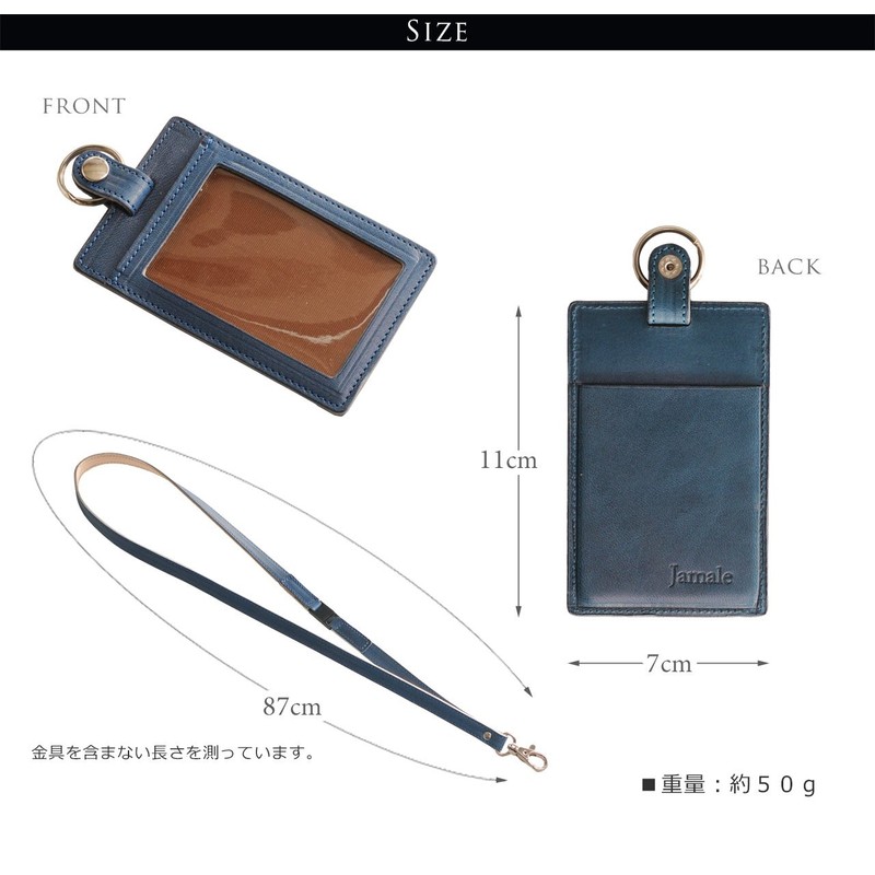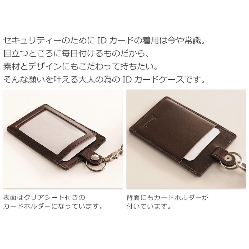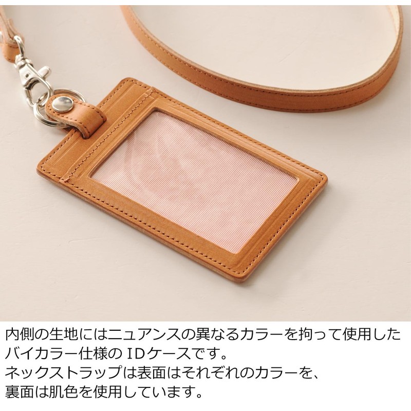 - Specifications: Genuine leather ID holder with strap. Each side has a card storage pocket on the front and back. It is meant to be worn every day in a place that stands out from the crowd, so we want to be careful about the material and design. This is an ID card case for adults with a sense of luxury and elegance that fulfill their wishes