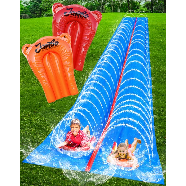JAMBO 40FT Mega Slip Splash and Slide with 2 Bodyboards | Water Slide Waterslide Backyard Outdoor Water Toys for Kids with Sprinklers | Outdoor Splash Mat Splash Pad, Double Lane Summer Toy