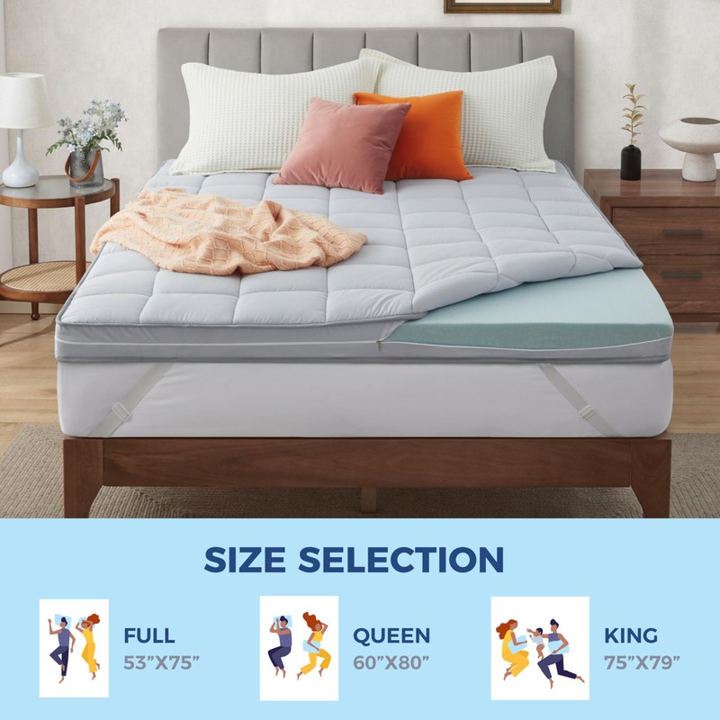 • SIZE AND COLOR:We provide different sizes cover of memory foam mattress topper: Queen(80X60X3”),King (79X75X3”),Full(75X53X3”), and you can choose white or gray.