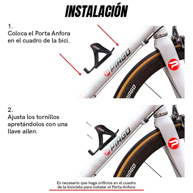 - Ideal para transportar tu botella de agua a todos lados con mucho estilo. Mantente hidratado a donde quiera que vayas. La instalación es en el cuadro de la bicicleta, de una manera muy sencilla.
