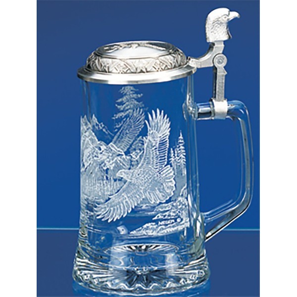 - JAMES MEGER GLASS BALD EAGLE STEIN - 1pc. The image shows the Eagle Stein from two sides.
