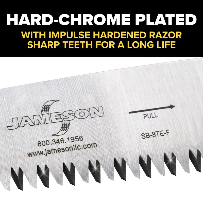 Jameson 8 Inch Folding Pruning Hand Saw for Single Hand Use with Tri-Cut Blade and Slip Resistant Grip, Professional Grade Knife