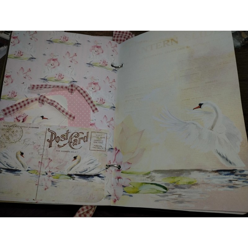 This beautiful scrapbook is perfect for anyone who loves unique and handmade items. Featuring stunning swan-themed pages, this journal is a wonderful way to capture memories and moments that will last a lifetime.