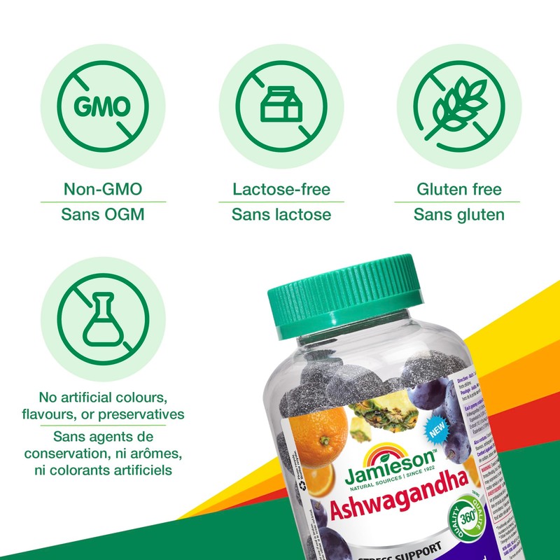 - RESIST STRESS: Jamieson's Ashwagandha gummies help support your response to stress while also building resilience to stress related fatigue.