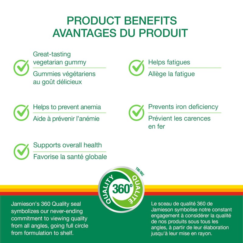 Jamieson Iron Gummies Grape Flavour 90 Count, Helps to Prevent Iron Deficiency