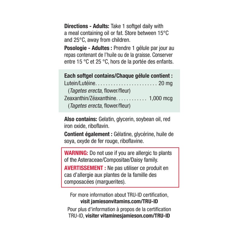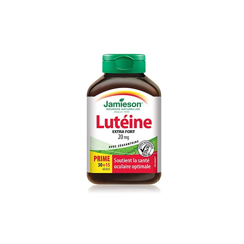 Jamieson Lutein Extra Strength provides antioxidants for the maintenance of optimal eye health. Lutein 20 Extra Strength consists of 1,000 mcg of Zeaxanthin that helps to support eye health in conditions associated with sunlight damage such as cataracts and age-related macular degeneration.