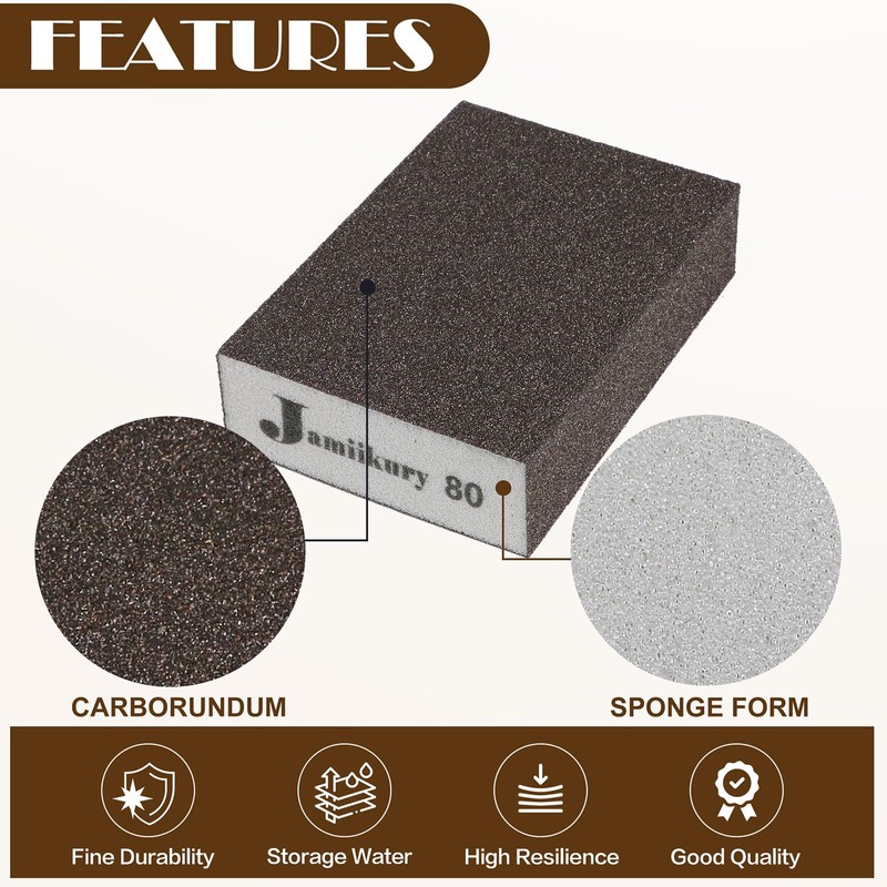- *Durable Material: The sanding blocks are made of high-quality brown corundum and high-density sponge, which is durable and not easy to break. The emery grains covered on the surface make the sand block more wear-resistant and improve the grinding efficiency.