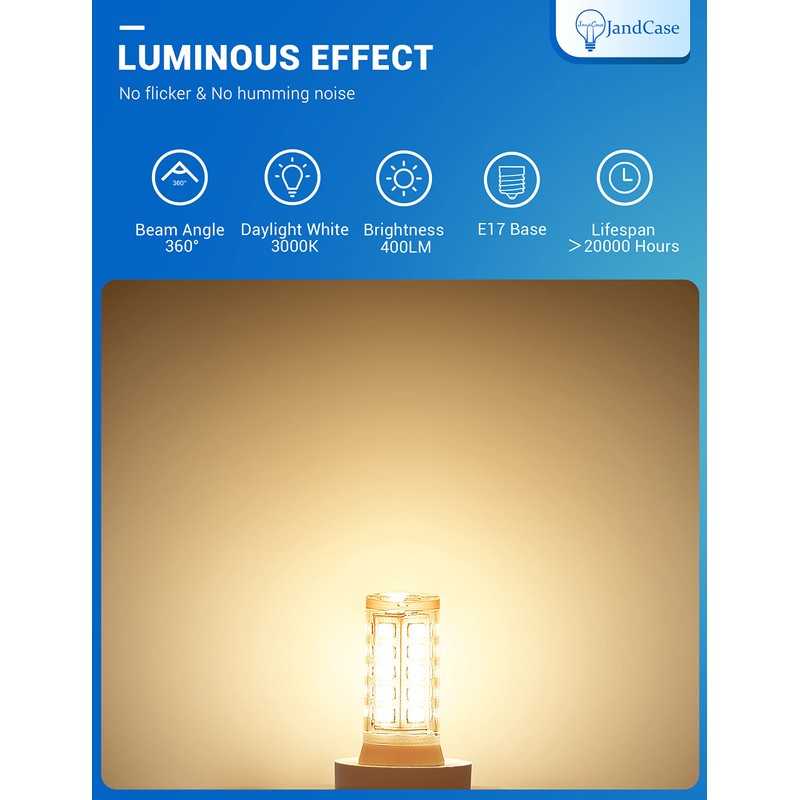JandCase E17 LED Bulbs, Microwave Oven Light Bulbs 40 Watt Equivalent Non-Dimmable, Warm White 3000K Under Microwave Light Bulb, E17 Appliance Bulbs Replacement for Refrigerator, Stove Hood, 2 Pack