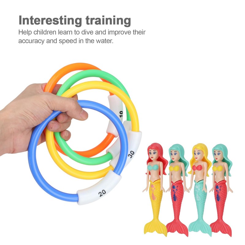 JANDH 8 pieces diving toys for children, underwater diving rings, quick sinking into the ground, mermaid diving toy, diving ring for underwater play and diving training of children