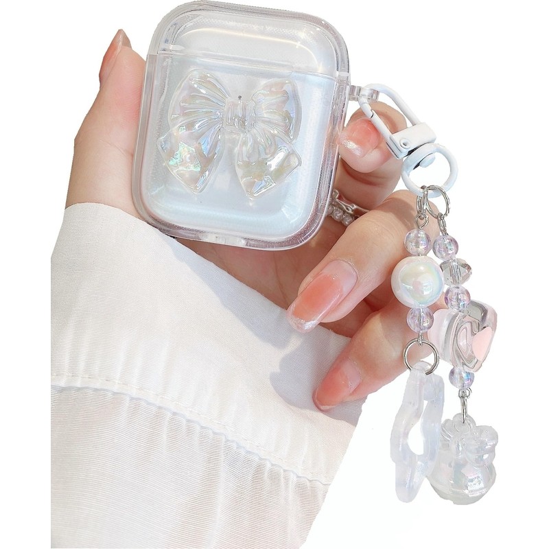 Protect your precious AirPods with this adorable AirPods case featuring a cute bowknot design. The crystal clear case allows you to show off the sleek look of your AirPods while keeping them safe from scratches, bumps, and drops. The attached Cute keychain makes it easy to keep your AirPods close at hand, preventing you from misplacing them. This case is compatible with AirPods 2nd/1st Generation,ensuring a perfect fit. With its charming and functional design, this AirPods case is a must-have accessory for young AirPods users who want to protect their Airpods in style.