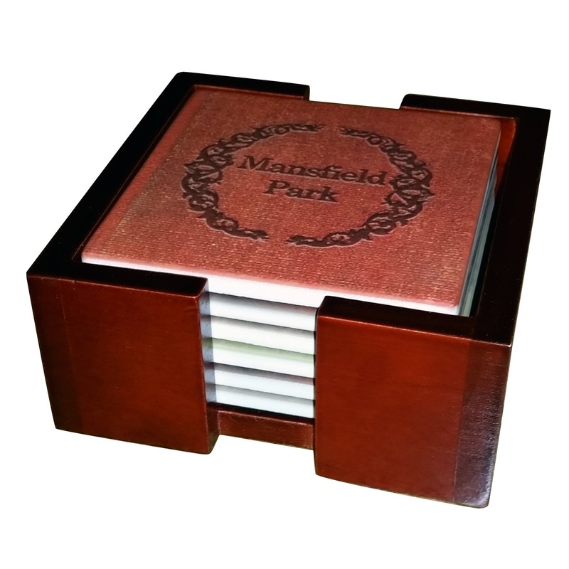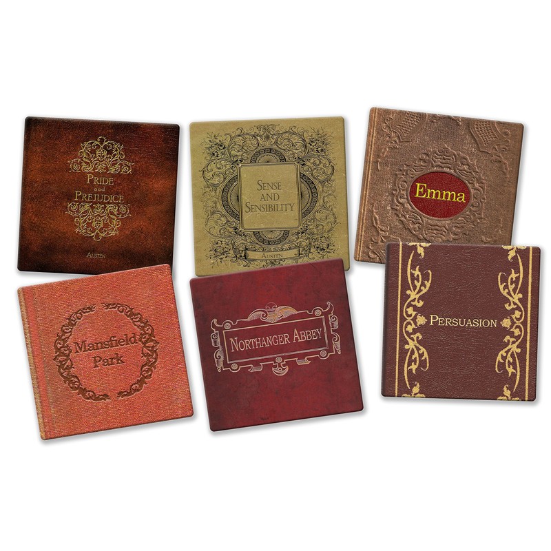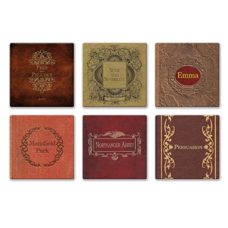 Jane Austen Books Coaster Set - Sandstone Tile with Cork Back - 6 Piece Set
