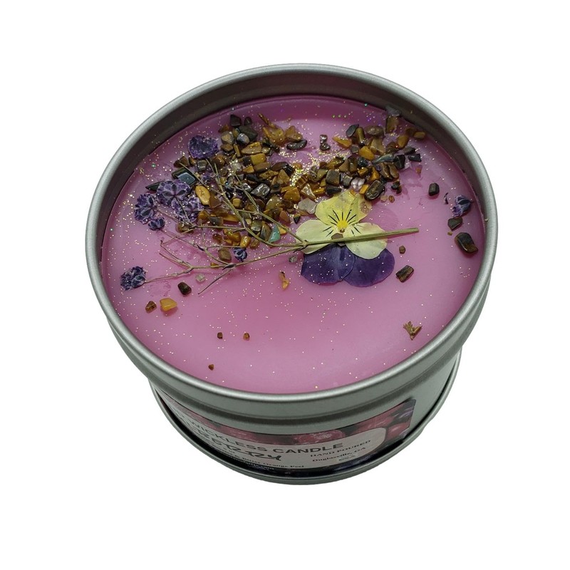 - Crafted with a signature soy wax blend, and Wickless with Crystal Stones and Botanical Enhancements as a topping