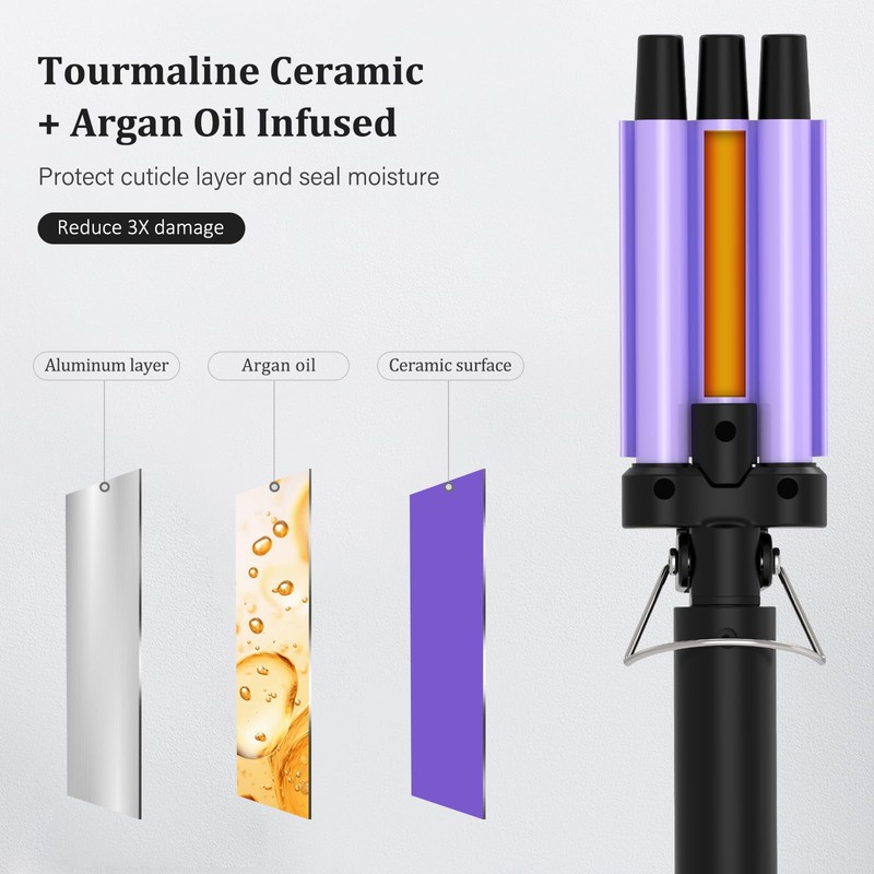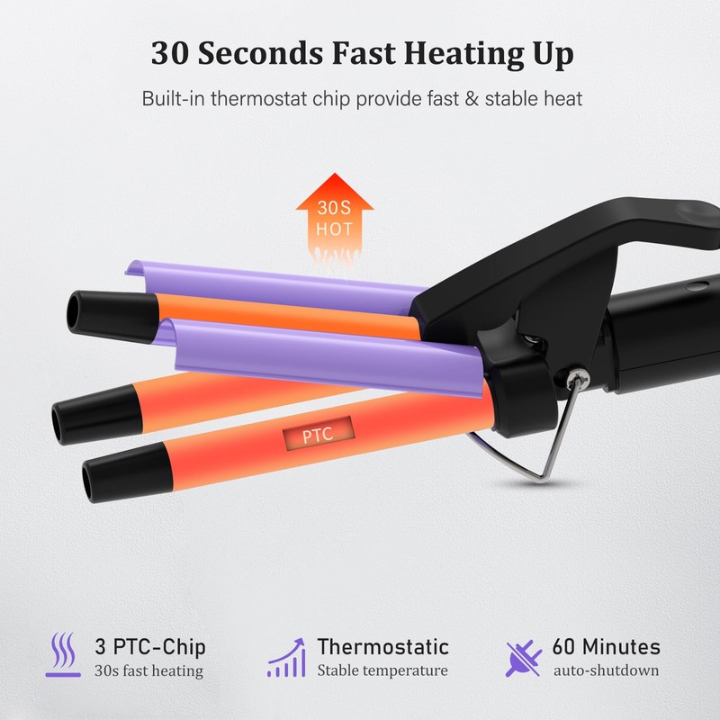 - 【Lang anhaltende Salonlocken】30 Sekunden schnelles Aufheizen, eingebauter Thermostat-Chip, Turmalin Keramik 3 fässer verteilt die Wärme gleichmäßig, Einfach glänzende, lang anhaltende Wellen bekommen.