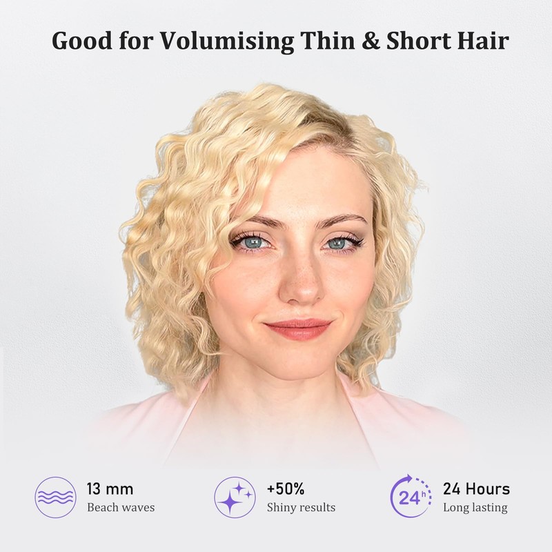 - 【Mini Welleneisen für Kurze Haare】Lockenstab 3 fässer größe 13mm, Produktbreite 5cm, Kann bis zu den Haarwurzeln gelockt werden, für dünnes und kurzes Haar, kreieren kann vintage Mermaid waves und klein wellen beach waves.