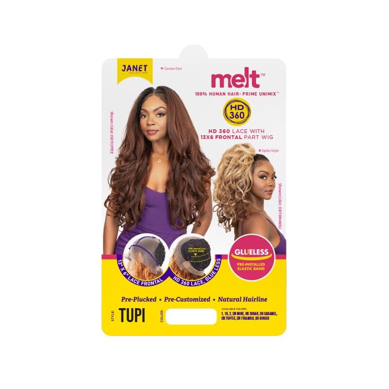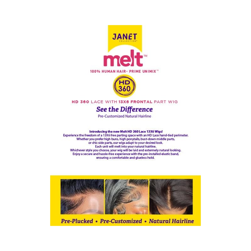 Janet Collection melt HD 360 HUMAN HAIR BLEND PRIME UNIMIX Hand-Tied 13X6 Frontal Baby Hair Transparent Lace GLUELESS TUPI WIG With SOFT YAKY TEXTURE. (COLOR #1)