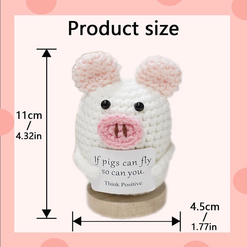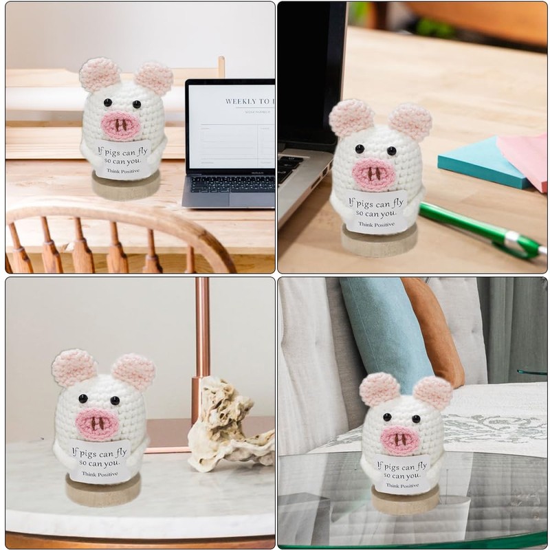janeunique Crochet Pig Positive Knitted Panda Emotional Support for Office Living room Bedroom Desk Decor (Pink Pig)