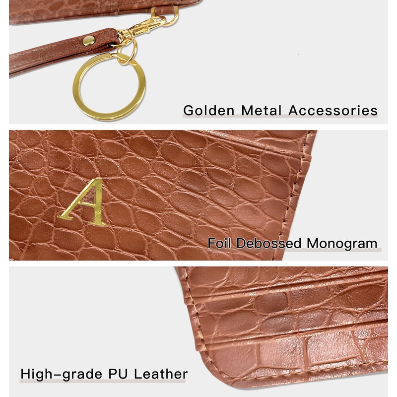 - [RFID Blocking Credit Card Holder for Women] This slim card holder for woman features the RFID blocking function, keep your information secure. This wristlet keychain wallet snugs your cards safely, not easy to fall off. To attach onto your bag or a landyard, or wear on your wrist,this monogram card holder is a must-have for shopping, clubbing, travelling or rambling, providing safety room to store your important necessities.