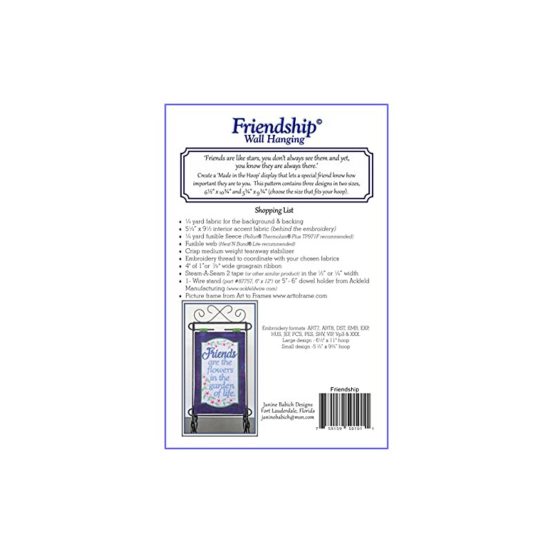 Janine Babich Designs Friendship Wall Hanging # JBDFRND A Janine Babich Machine Embroidery CD