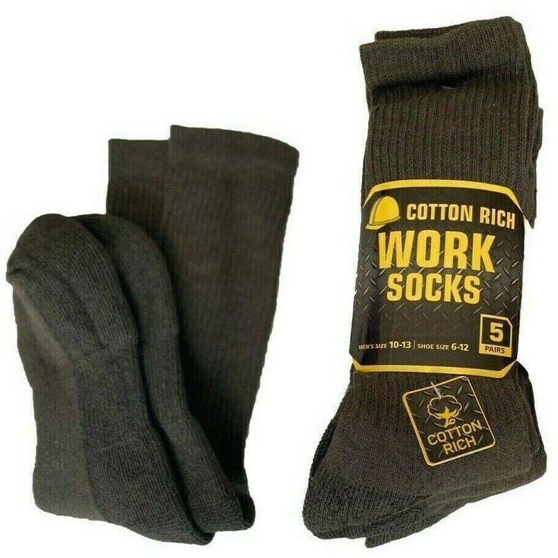 Mens Work Socks Cotton Rich Reinforced Heel Heavy Duty Socks 5-20 Pair Size 6-11