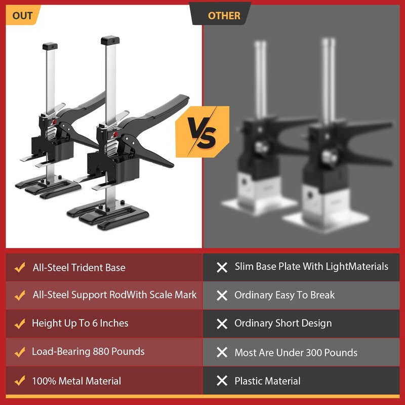 - 【COMFORTABLE HANDLE, PRECISION CONTROLLABLE】: Lever arm lifter design, comfortable handle, hand-held design, grip handle can quickly rise. Press the plate gently to lower quickly. It can help the installation personnel to complete the work easily, relieve fatigue and work efficiently