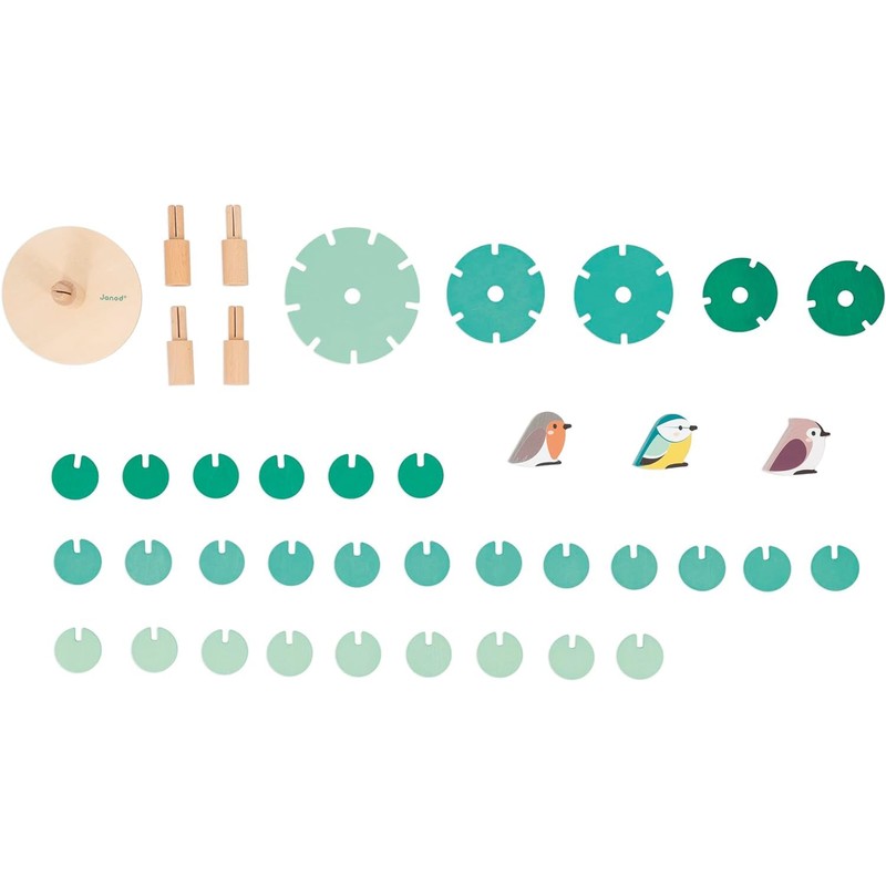 - RESPONSIBLE: This watercolour painted FSC wood game contains 37 pieces of tree and 3 birds for more incentives to play. Size: 13.5 x 13.5 x 30 cm. Janod toys recommended for children aged 3 to 5 years.