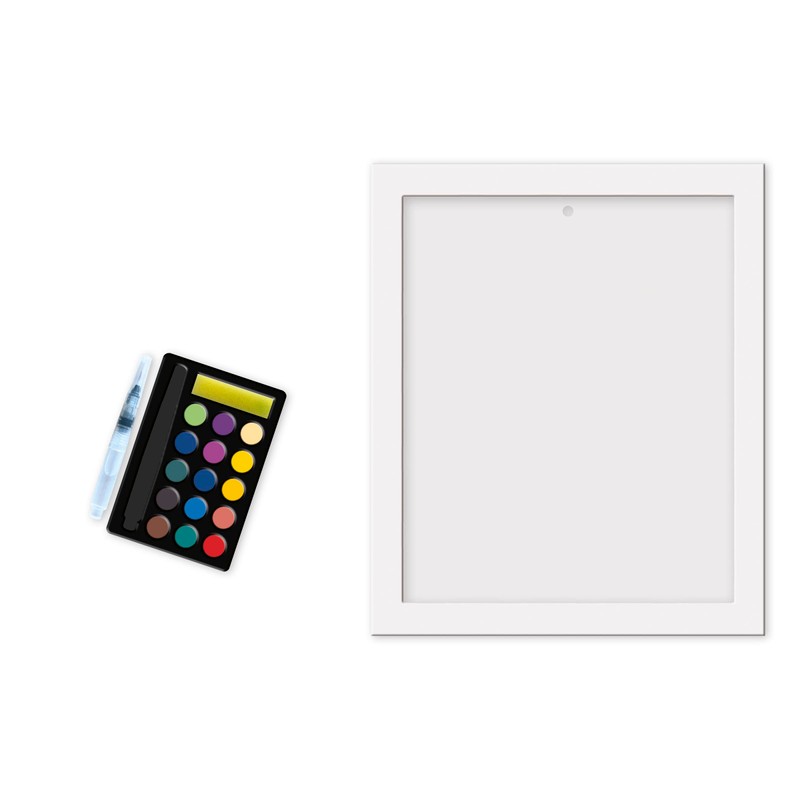 - Features: This Janod set contains 4 boards, 1 buildable frame, 1 watercolour palette (15 colours), 1 water tank brush, 1 sponge, 1 instruction booklet. Duration: approx. 1 hour per board. DIY activity for children aged 6-10 years.