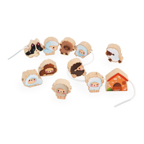- WELCOME TO THE SHEEP STALL: The beads of the Janod motor skills game have the shape of a herd of 9 sheep that is driven back into the stable with the dog. So children from 2 years old can familiarize themselves with the farm animals and play shepherd.