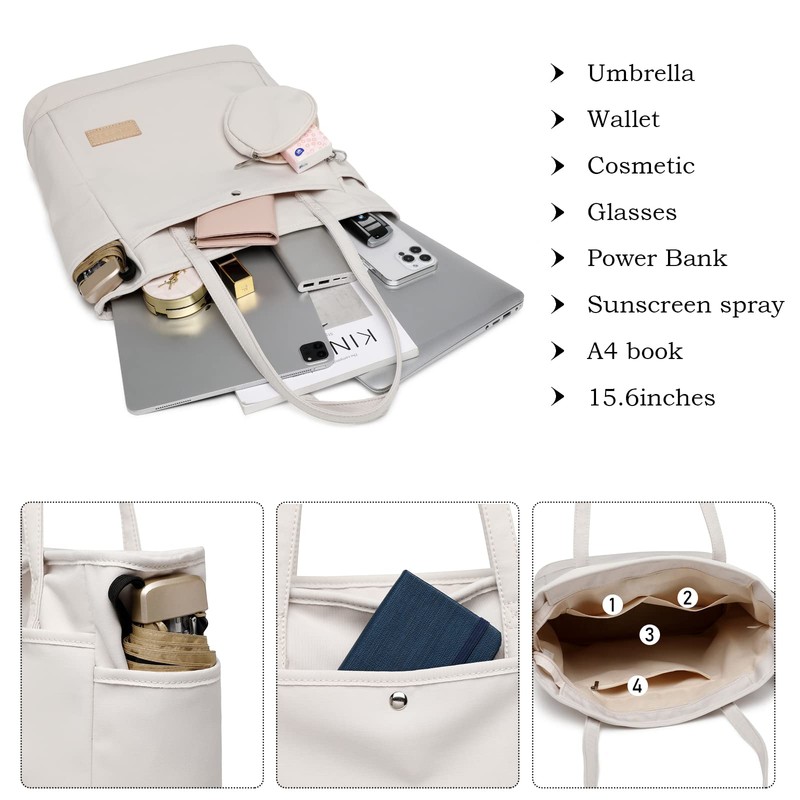 - Capacity: the tote bag with plenty of storage space. 4 x compartments on the outside, 3 x inner compartments. 33.5 x 14.5 x 35 cm, with zip and magnetic press stud. The small inner pocket with zip is ideal for wallets and house keys. The pocket for A4 files, iPad, keys, books, wallets. Enough space for everyday items, but also for short trips and students