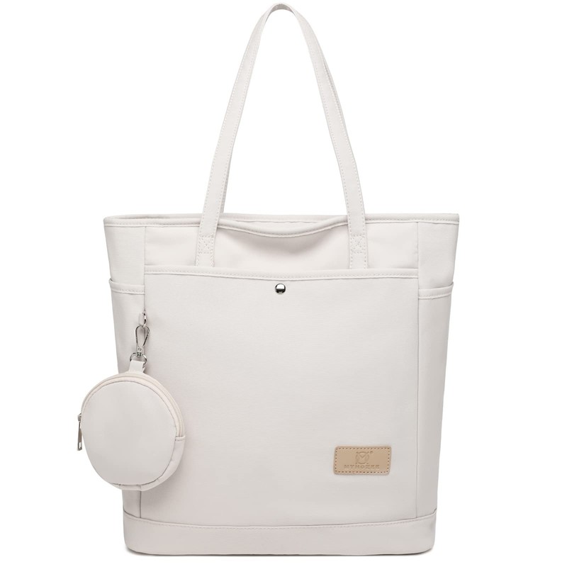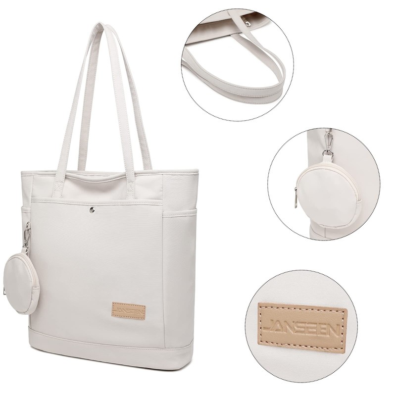 JANSBEN Women's Shopper Bag with Change Purse, Canvas Shoulder Bag with Zip, Large Handbag Fabric Shopping Toto Bag for Work and School on the Go, beige, Shopper