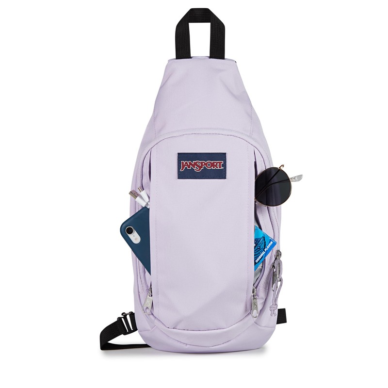 JanSport Move Sling Crossbody Bag – Main Compartment, Zippered Front Pockets, Adjustable Shoulder Strap, Fully Padded Back Panel, Pastel Lilac