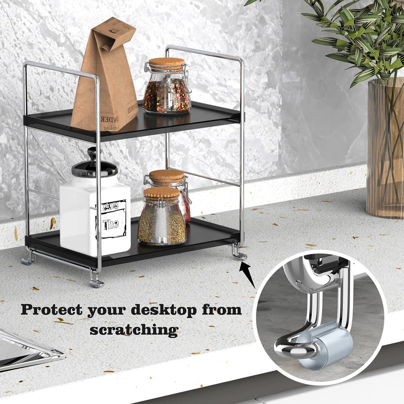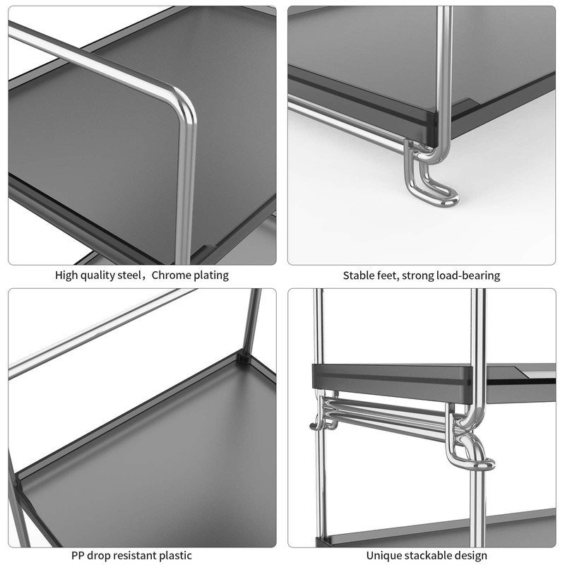 JANUS LiANG 2-Tier Bathroom Organizer Countertop Storage Shelf, Vanity Tray Cosmetic Stackable Storage Rack, Kitchen Spice Rack (Chrome + Black)