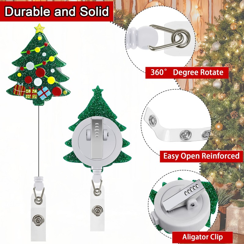 - 【360-Degree Rotating Alligator Clip】 The Christmas badge reel retractable adopts a 360-degree rotating alligator clip design, which is easy and convenient to wear from any angle, while keeping your badge straight, it can be easily and firmly fixed to any bag, collar, belt and pocket. and the length of the retractable cord can be extended to 65 cm/25.6 inches, which is enough for you to relax Pull quickly to open doors or scan ID cards without removing the badge holder.