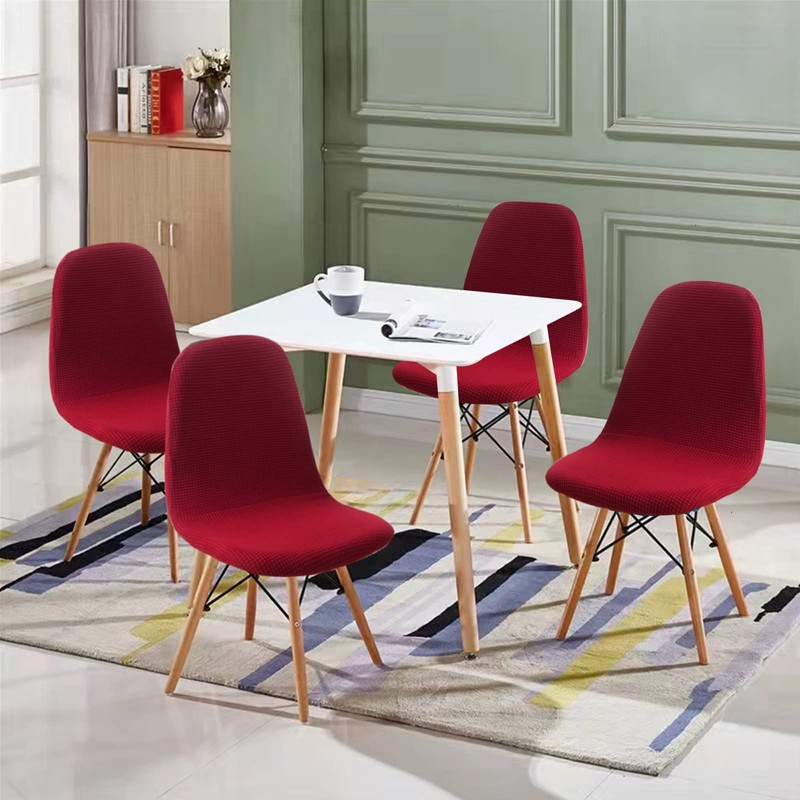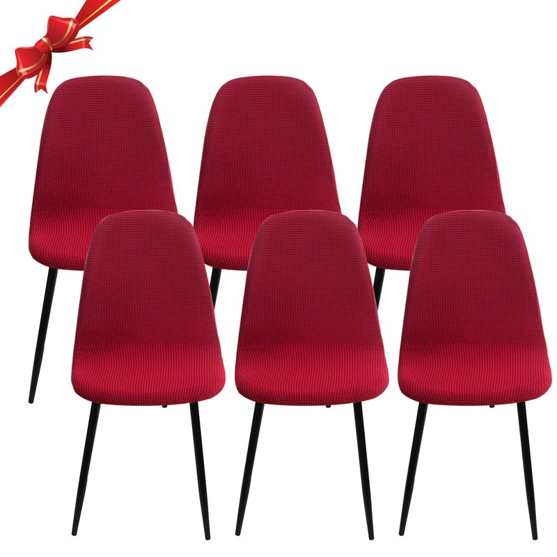 Jaotto Fundas para Sillas Pack de 6, Fundas Sillas de Comedor Redondas Elásticas Ajustables, Jacquard Fundas para Silla Oficina Sin Brazo, Cubiertas de Sillas Redondas para Cocina Estudio, Vino Rojo