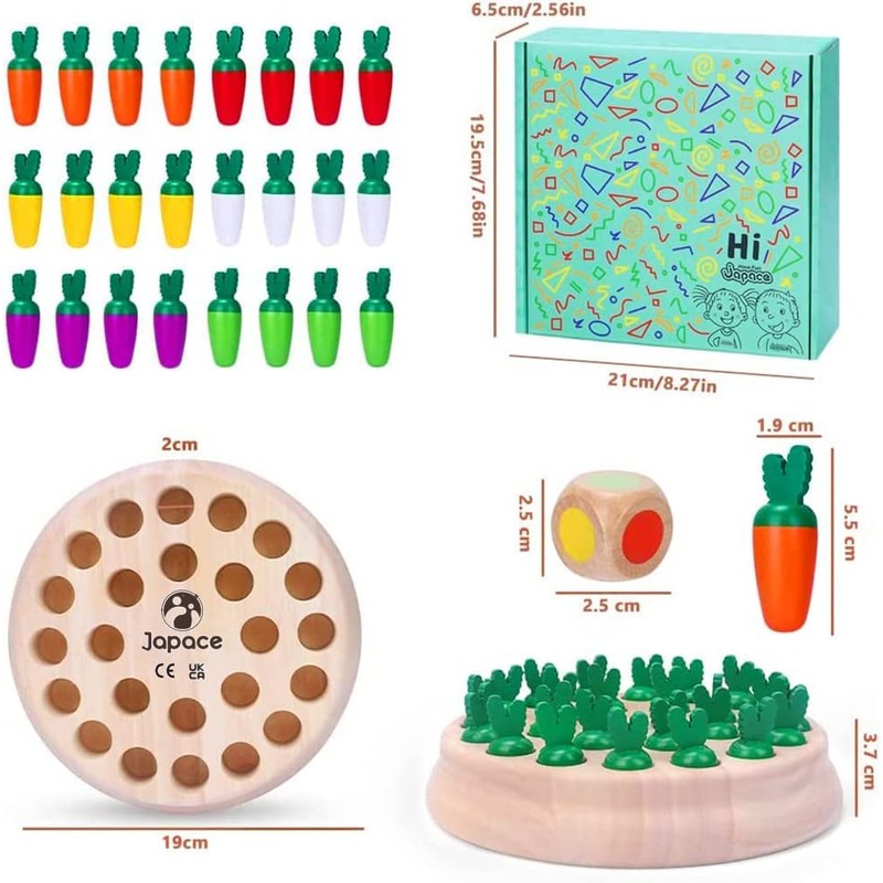 Japace Wooden Memory Game, Carrot Chess Children's Game Educational Toy Promotes Memory and Concentration, Family Board Game & Board Game Toy from 3 Years