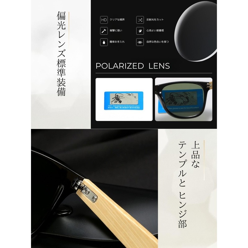 [JAPANDIPITY] 木製 サングラス バンブー 偏光/調光 ユニセックス ハードケース付き (ブラック(偏光))