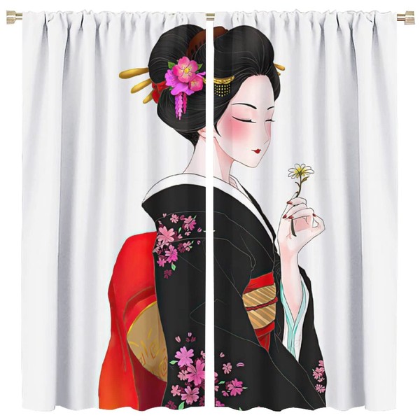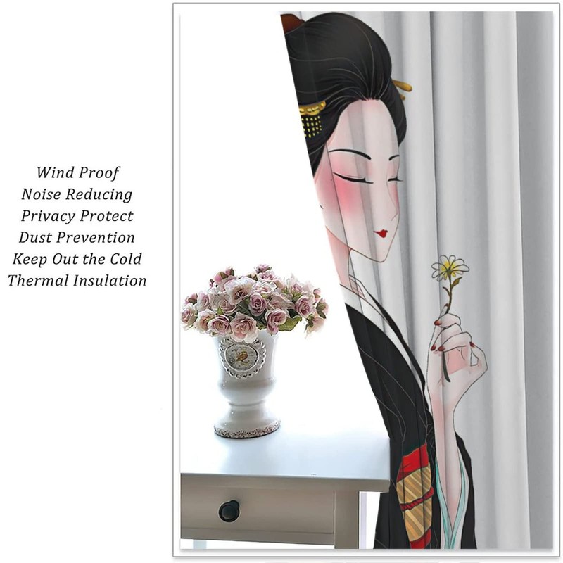Japanese Curtain Kyoto Geisha Girls and Cherry Blossom Window Beautiful Clear Art Curtain Used for Room Shading and Sun Protection Decorative Curtains 42x63in